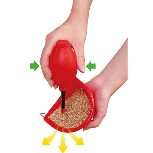 商品説明: 小鳥の皮付エサの殻だけをカンタンに吹き飛ばすブロワー。口で吹くよりも清潔!日常のお手入れもラクにできます。